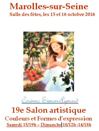Les 15 et 16 octobre prochains à la salle des fêtes de Marolles sur Seine aura lieu le 19e salon artistique couleurs et formes d’expression.