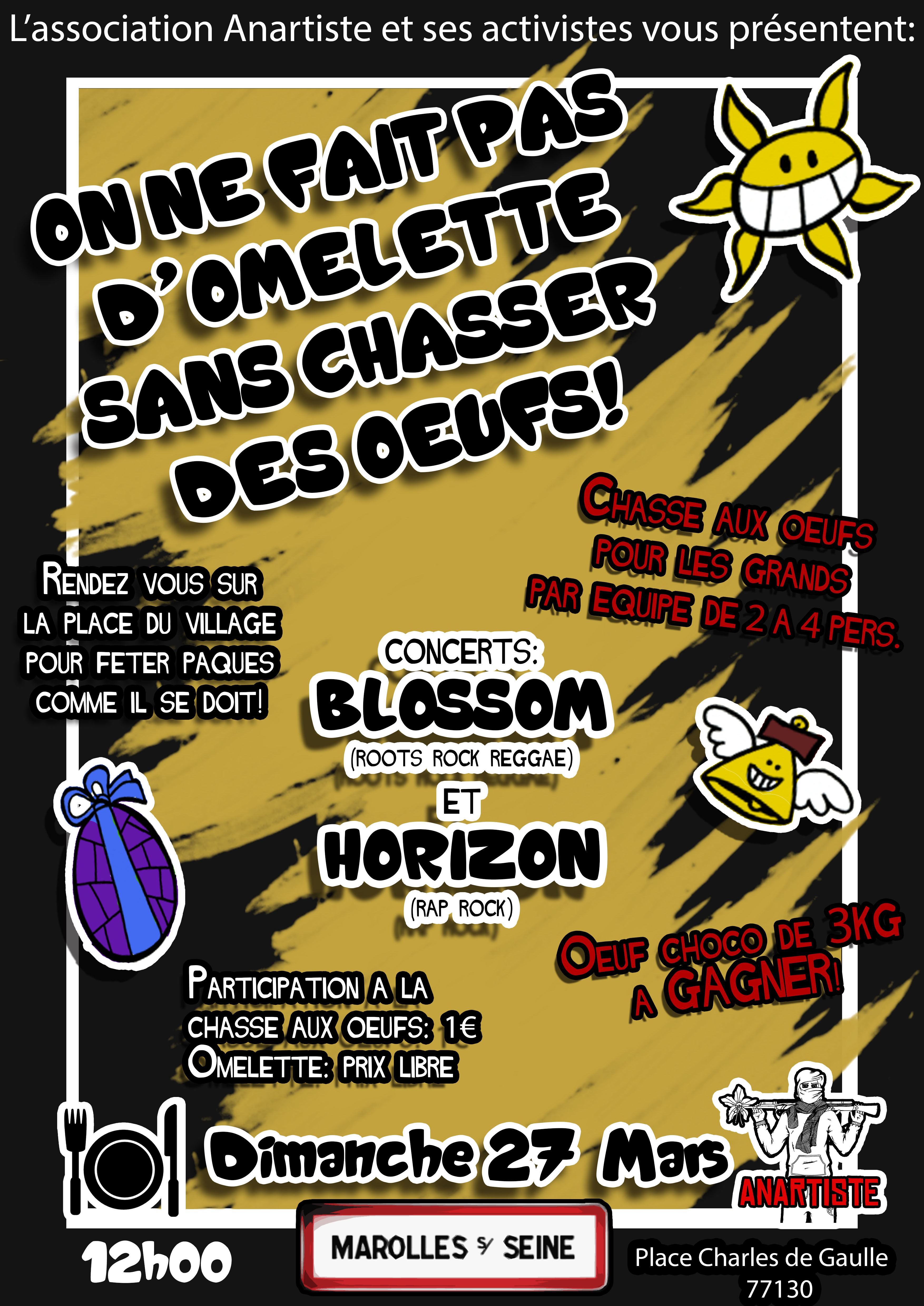 L’association Anartiste organise pour les ados et les jeunes une chasse aux vrais oeufs d Pâques à partir de 12h.