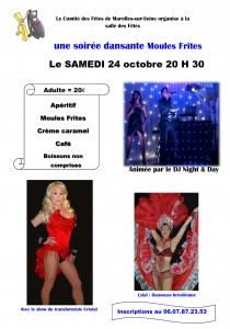 Une soirée dansante Moules Frites Animée par le DJ Night & Day - Le SAMEDI 24 octobre 20 H 30 Adulte = 20€ Inscriptions au 06.07.87.23.53