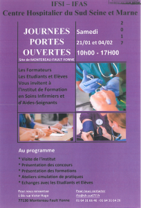 Site de Montereau . Les formateurs et les étudiants vous invitent à l'Institut de Formation en Soins infirmiers et aides-soignants Au programme : * Visite de l'institut * Présentation des concours * Présentation des formations *Ateliers simulation de pratiques *Echanges avec les étudiants et élèves