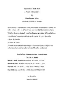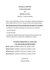 INSCRIPTION ÉCOLE ÉLÉMENTAIRE 2026/2027